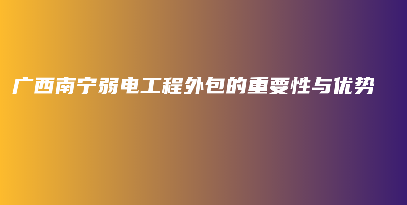 随着信息化和智能化的不断发展,弱电工程外包市场具有巨大潜力。尤其是在南宁这样的快速发展的城市,弱电工程外包市场前景非常广阔。