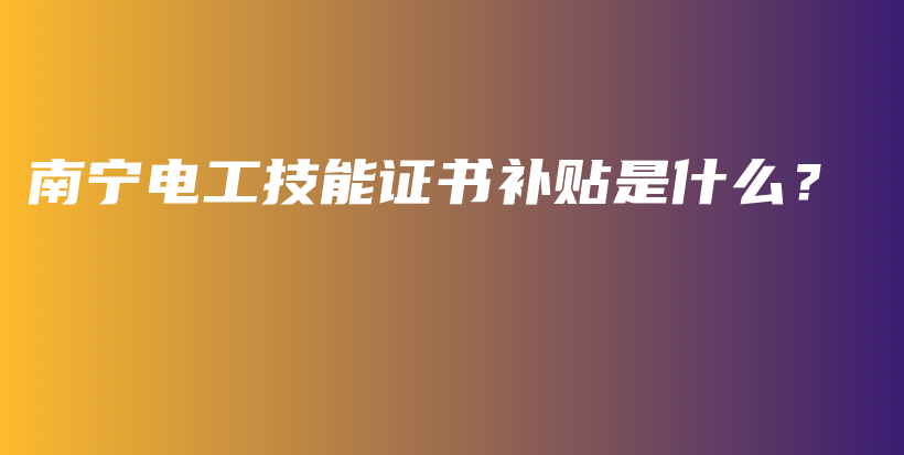 南宁电工技能证书补贴的条件有哪些?