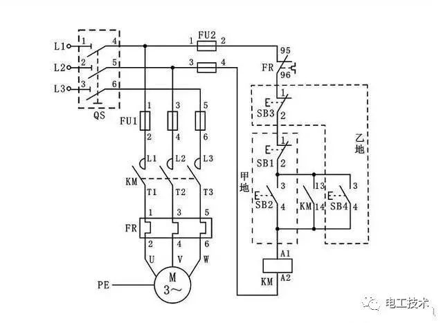 图中,QS为断路器,KM为接触器,FR热继电器,SB按钮,KA1和KA2为两个中间继电器。可以实现单按钮控制启动,断开的控制。