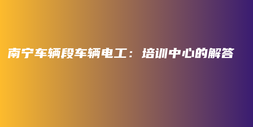 作为一名特种作业考证培训中心的老师,我很高兴为您解答关于南宁车辆段车辆电工的问题。